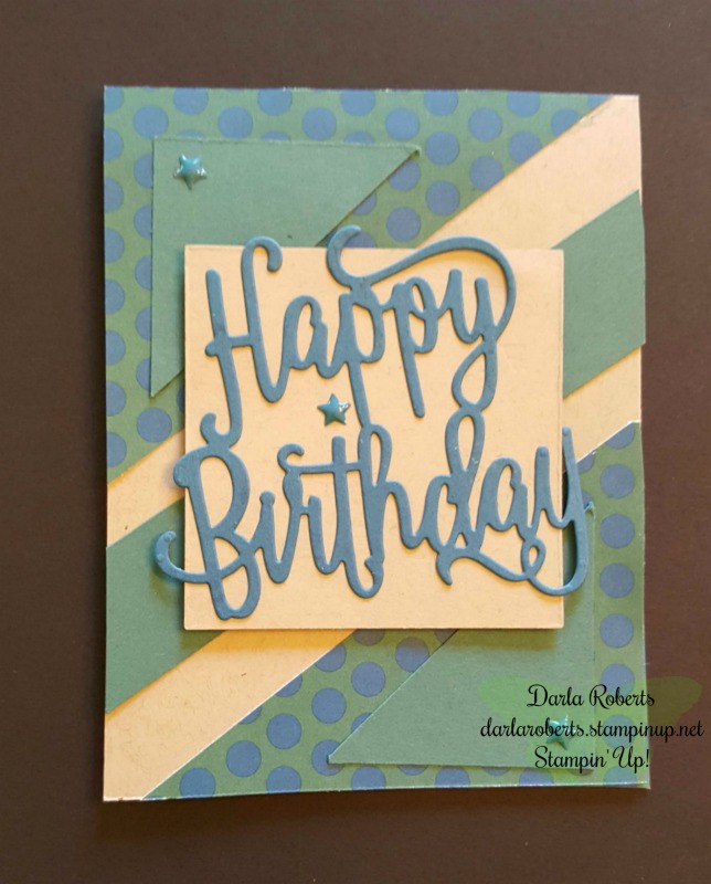I made this fun card for him using the Happy Birthday Thinlets as the focal point. Combining this fun designer series paper and colors of card stock was fun to make last night for him!