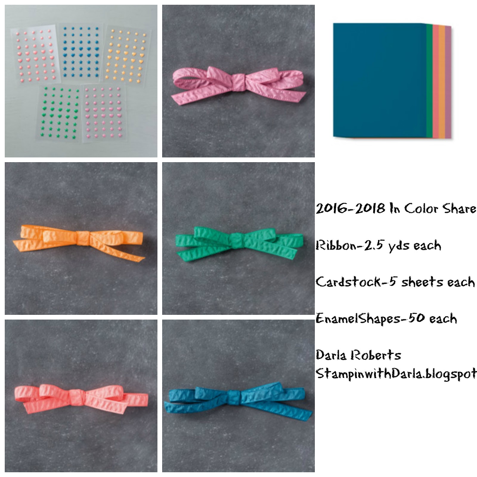 2016-2018 In Color Share includes Ruched Ribbon, Card Stock and Enamel Shapes