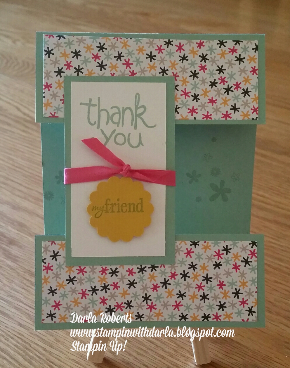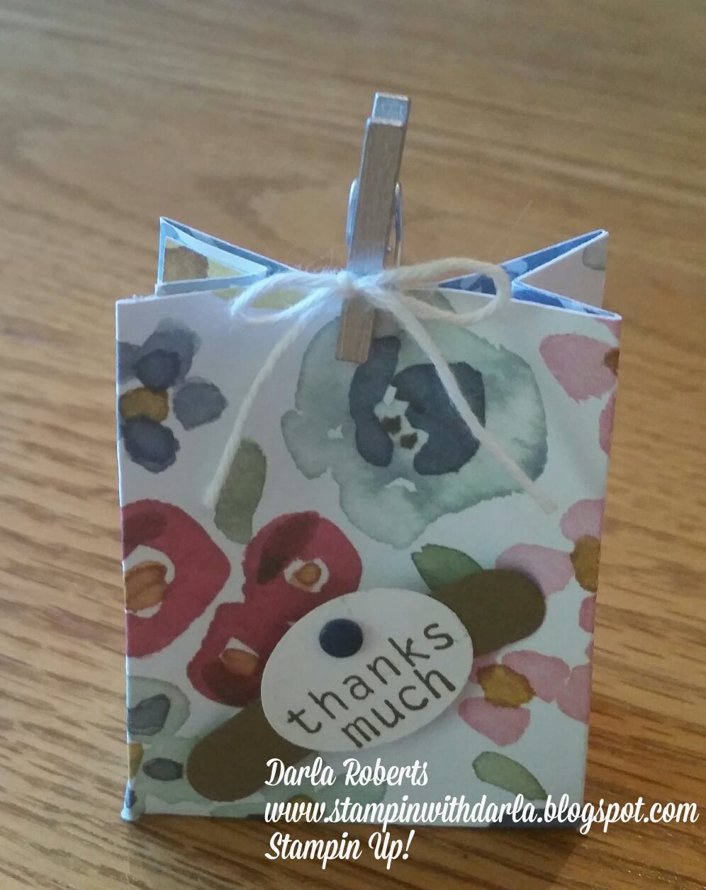 Over on the SSInkspiration Design Team Blog today were featuring projects but cards. We were challenged to create something other than a card. So, I decided I would create this cute little bag to use as my thank you gift for the people that rsvp to my upcoming card class! Love projects like this. Just change up the paper and sentiment it becomes an any occasion idea. I love watching videos and this one came from Pootles in the UK. So, excited I will get to meet her soon on the Grand Vacation trip that I earned to the Med. Cruise!!