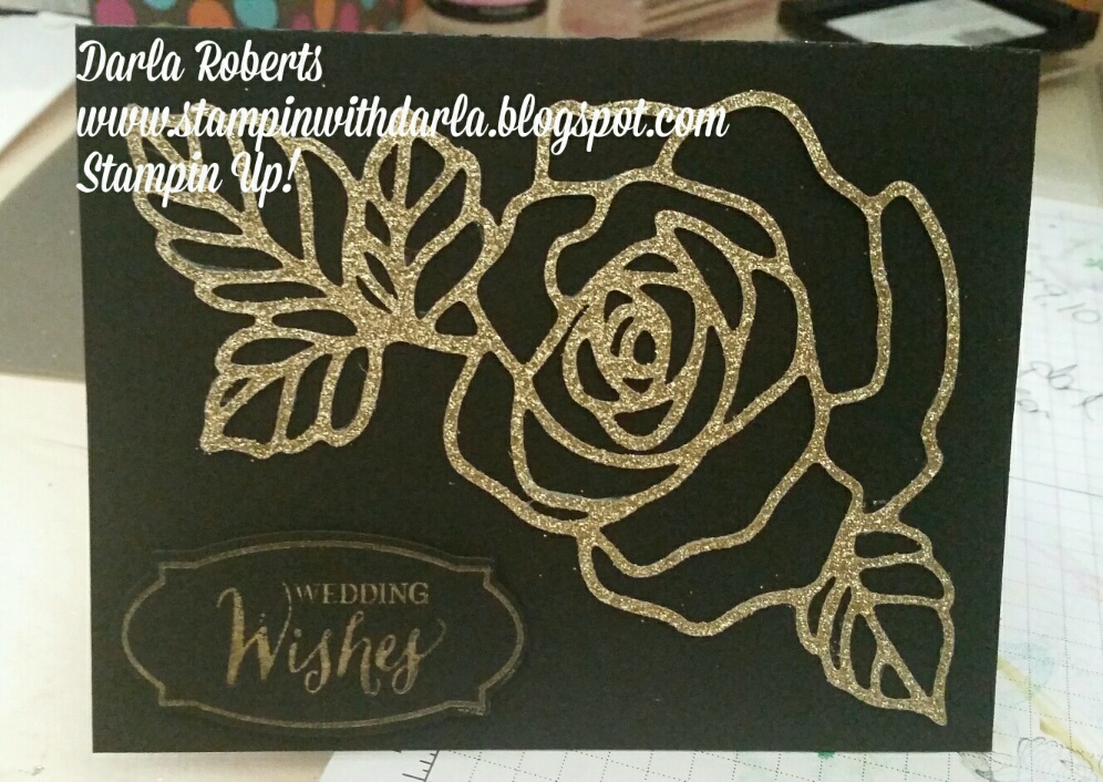 Here is my shimmer wedding card I made recently for a new customer of mine. I never shared this on my blog so it was perfect to share now for this post. The wedding colors were gold and black. We were both happy the way it turned out! It was a fun and pretty quick card to make using the framelets. This was my first card I made this awesome stamp set. I sure hope it gets carried over into the new catalog that comes out soon!